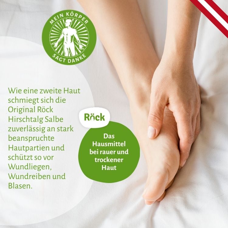 Die Hirschtalg Salbe hat ihren Ursprung in der alpinen Hausapotheke und wurde dort seit Generationen zur Fuß- und Hautpflege eingesetzt. Röck Naturprodukte verbindet dieses traditionelle Wissen heute mit modernen, hochwertigen Inhaltsstoffen – für eine wirksame, hautfreundliche und natürliche Pflegeformel.